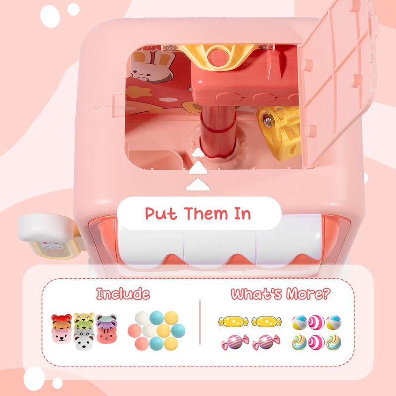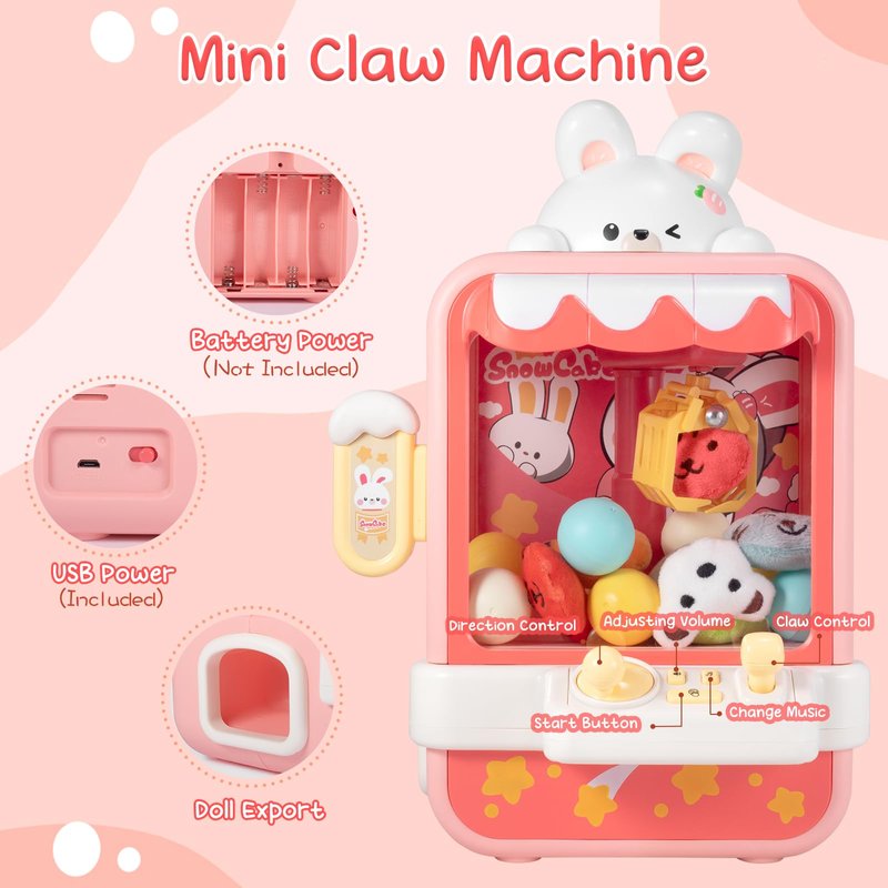 - What's Included: The mini claw machine comes with 10 cute plush toys and 10 capsule toys, and even features realistic music to create an authentic game atmosphere. Plus, you can adjust the volume or turn it off if you prefer. It's also perfect for use as a reward system to motivate kids.