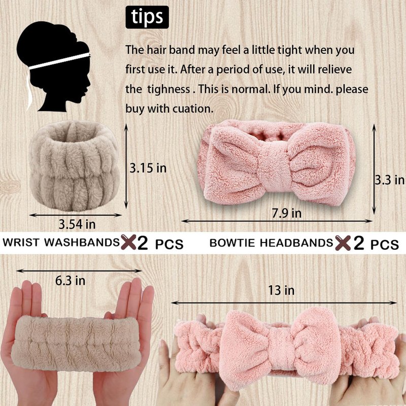 - [Package include] you will receive 2 pieces of microfiber bow hair bands and 2 pieces of wrist bands, simple and classic Pink&Khaki colors will give you good mood, you can also share these wristbands & Headband set with friends and families.