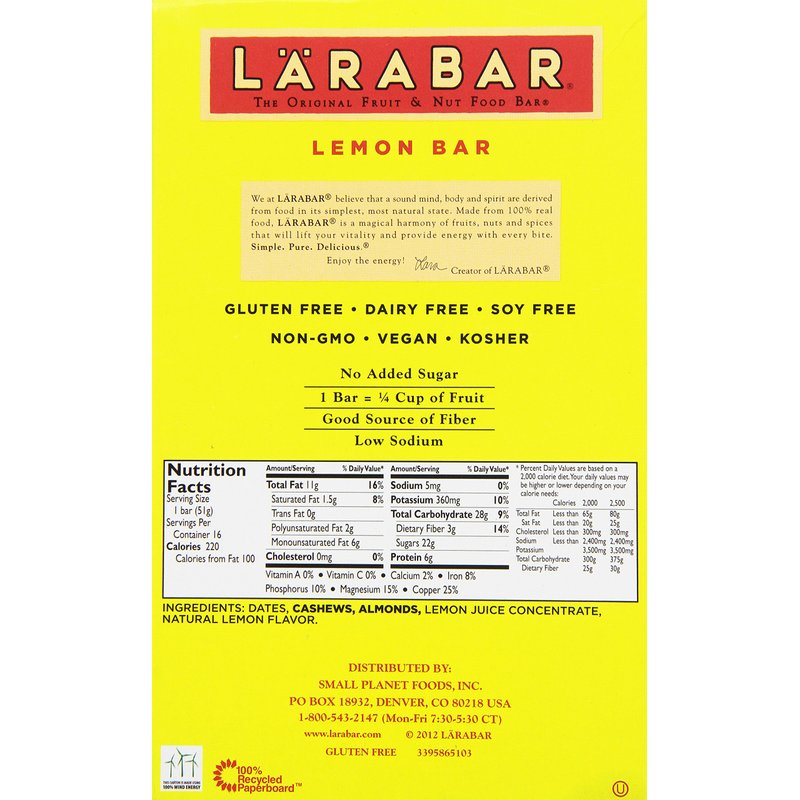 LÄRABAR Gluten Free Bar, Lemon Bar, 1.8 oz Bars (16 Count), Whole Food Gluten Free Bars, Dairy Free Snacks