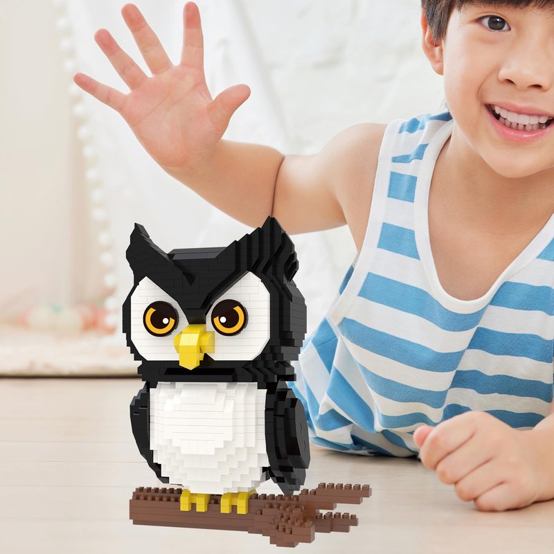 Larcele Animal Series Micro Building Blocks Animal Set, DIY Mini 3D Building Toy Bricks Kit,1216 Pieces KLJM-07 (Owl)