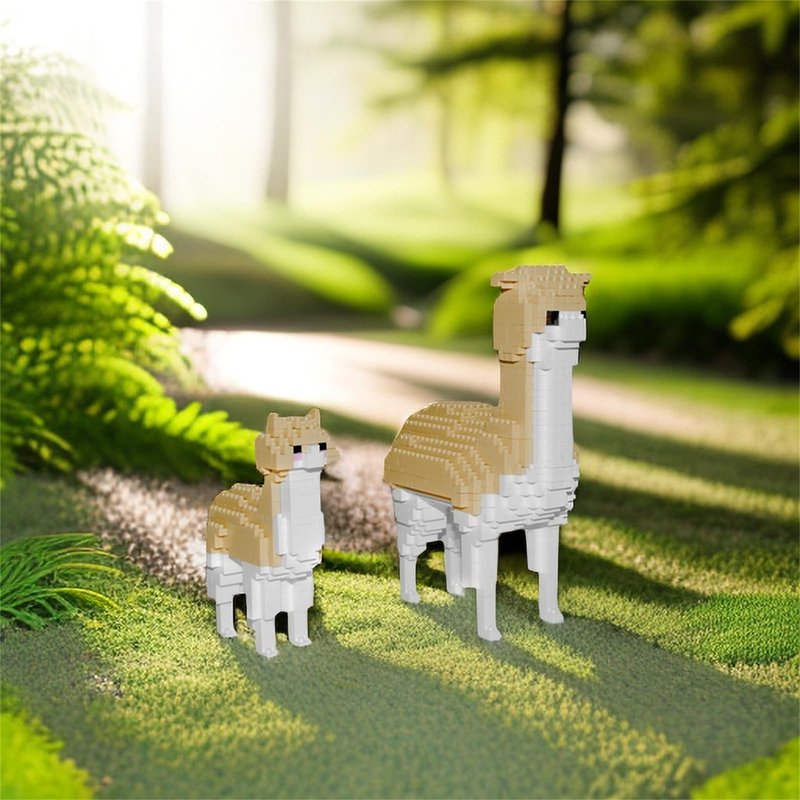 Larcele Animal Series Micro Building Blocks Animal Set, DIY Mini 3D Building Toy Bricks,1258 Pieces KLJM-07 (Two Alpacas)