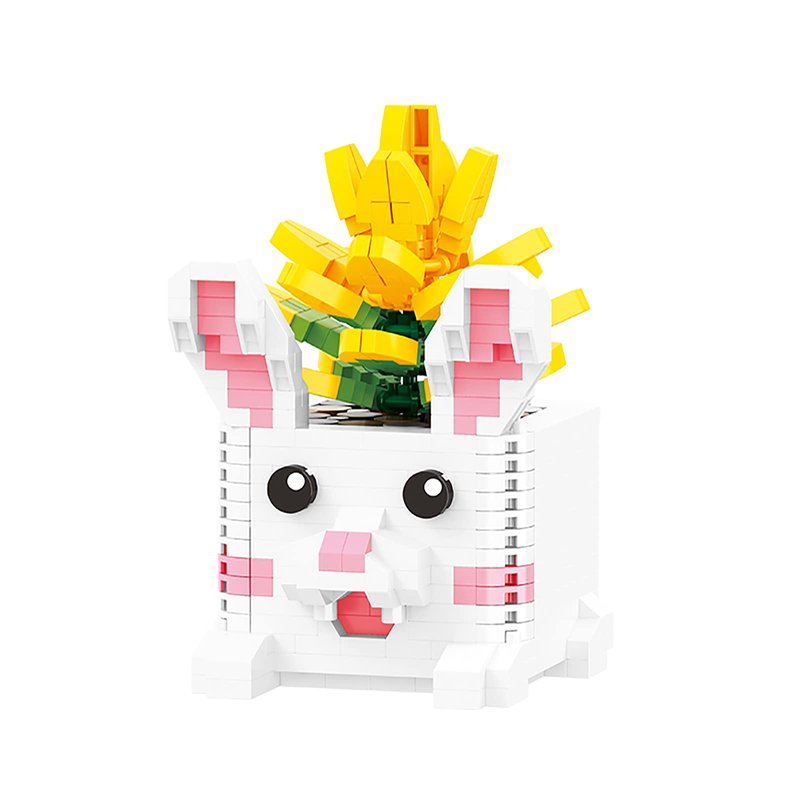 Larcele Micro Building Blocks Set, Dog and Flower, DIY Mini 3D Building Toy Bricks,501 Pieces KLJM-08 (Rabbit, Yellow Agave)