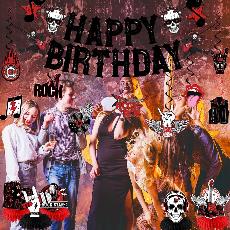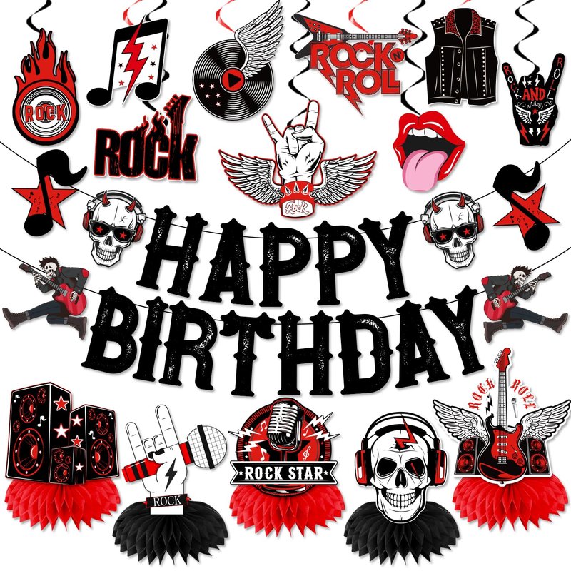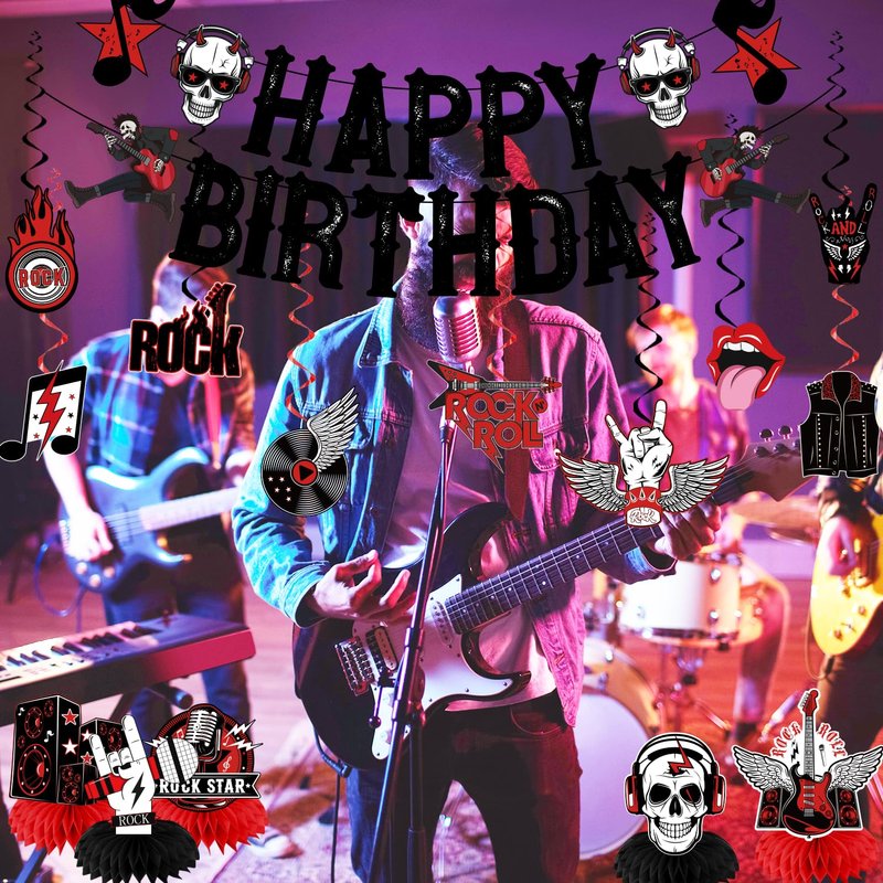 - 【PACKAGE INCLUDES】Rock and roll birthday party decorations includes 1pc happy birthday banner, 9pcs hanging swirls and 5pcs honeycomb centerpieces. They will accentuate your party style and add to the party vibe, and they'll be a fun and attractive addition to your party
