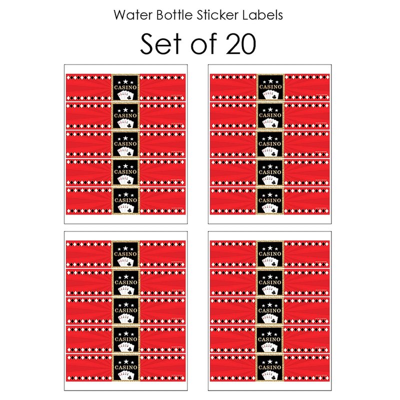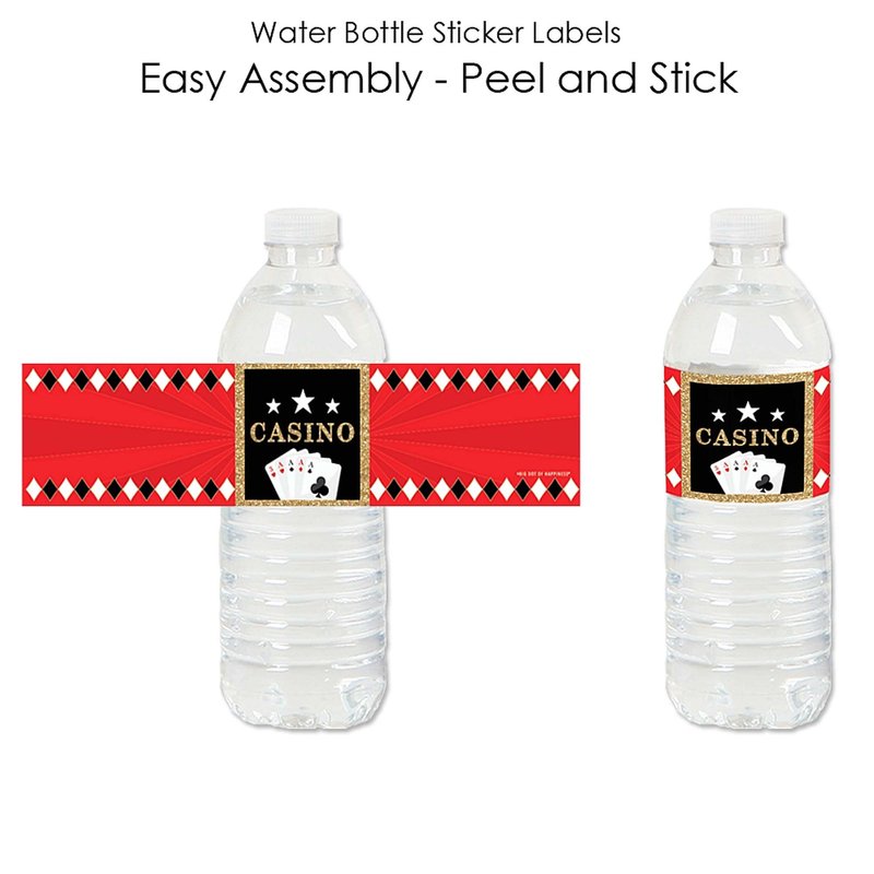 - Las Vegas - Casino Water Bottle Sticker Labels INCLUDES 20 DIY water bottle labels. Las Vegas - Casino DIY party supplies are perfect for quickly dressing up any beverage bottle in your party theme.