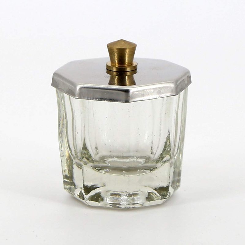 - Glass dappen dish with stainless steel lid, keeps area clean, and easy to clean