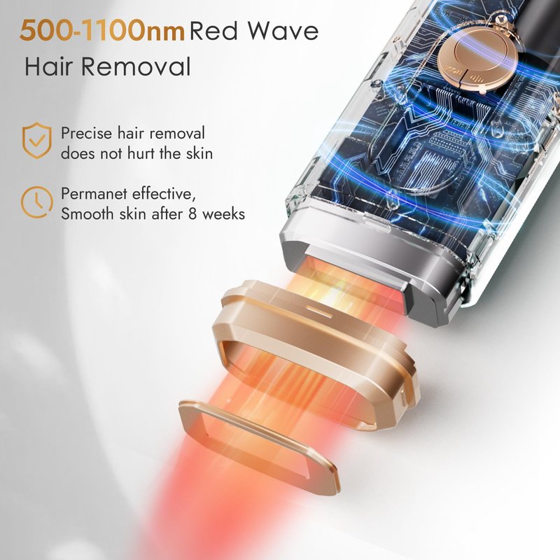 The Laser hair removal device has upgraded 5 adjustable energy levels that you can adjust suitable energy level to satisfy your demands on hair removal and 12J energy is distributed more evenly to accommodate different skin and IPL hair removal device areas. It ensures long-lasting laser hair removal results for both women and men.