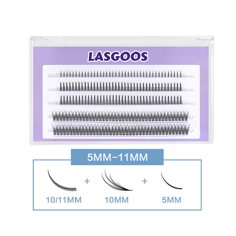 LASGOOS DIY Eyelash Extensions Natural 3D Individual Lash Single + A + Fish 200pcs Clusters Lashes Volume Lashes Mixed Set, Home Grafted Wedding Date Salon Lashes Wholesale Pack (LS-AFL1)