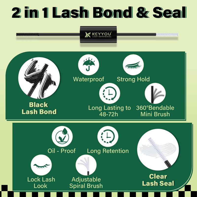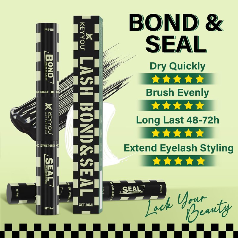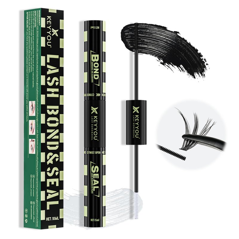 Lash Bond and Seal 10ML Bond and Seal Lash Glue KEYYOU Lash Cluster Glue Mascara for Long Lasting WaterProof Lash Extension Glue Black-5ml+5ml