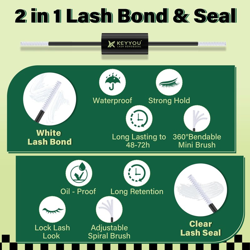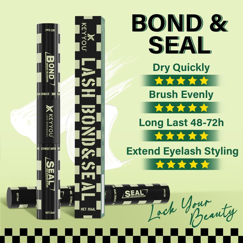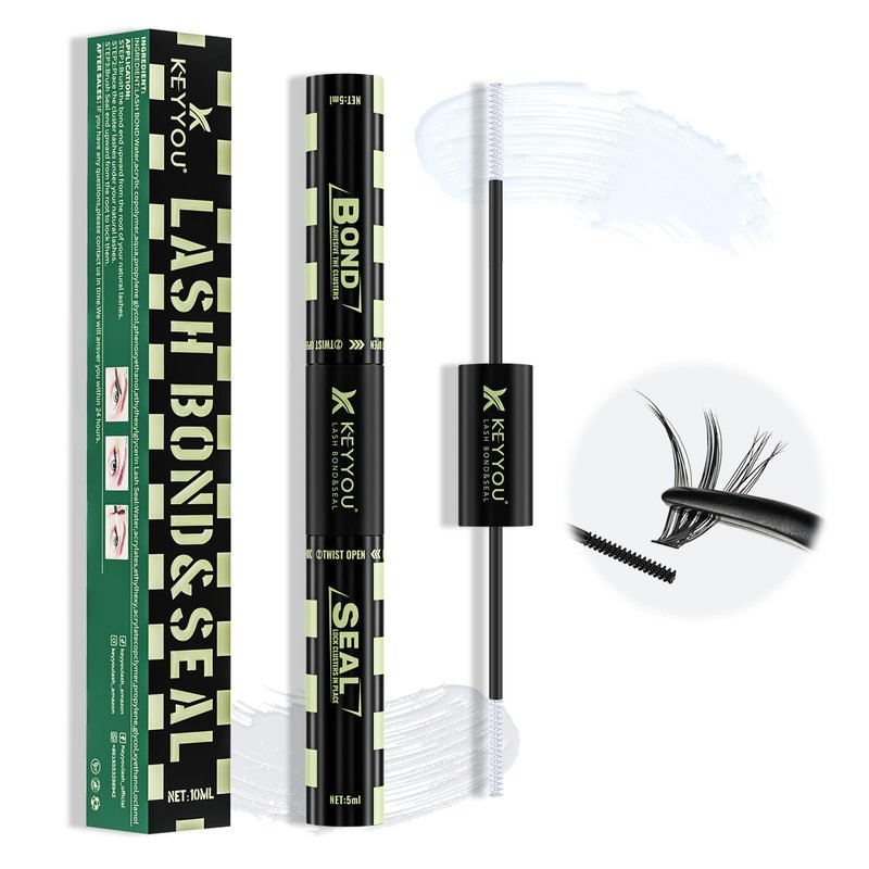 Lash Bond and Seal 10ML White Bond and Seal Lash Glue KEYYOU Lash ClUSter Glue MasUSra for Long Lasting WaterProof Lash Extension Glue Clear-5ml+5ml