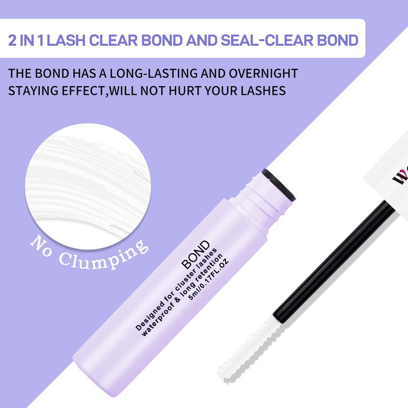 Lash Bond and Seal Waterproof 2 in 1 Cluster Eyelash Glue Strong Hold All Day Wear DIY Lash Extensions Glue Suitable for Sensitive Eyes-Clear