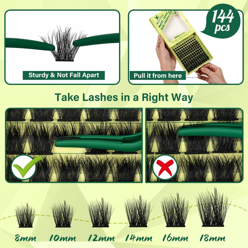 - Soft&Comfortable:KEYYOU lash clusters are made of high-quality imported materials which is super soft,lightweight and more comfortable to wear.144pcs in one box, contains lashes of 8-18mix different lengths to better meet your needs and save time and money.