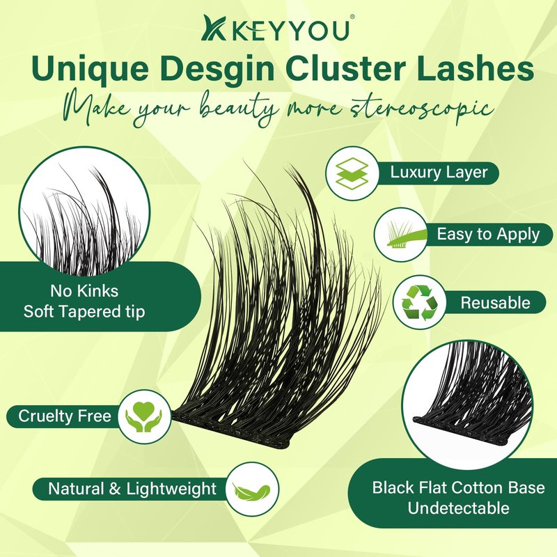 - 3D Fluffy Effect:3D Lash clusters can bring richer layering and three-dimensionality to the eyes. Because there are more fluffy, it creates more depth on the eye, making the overall effect more vivid.