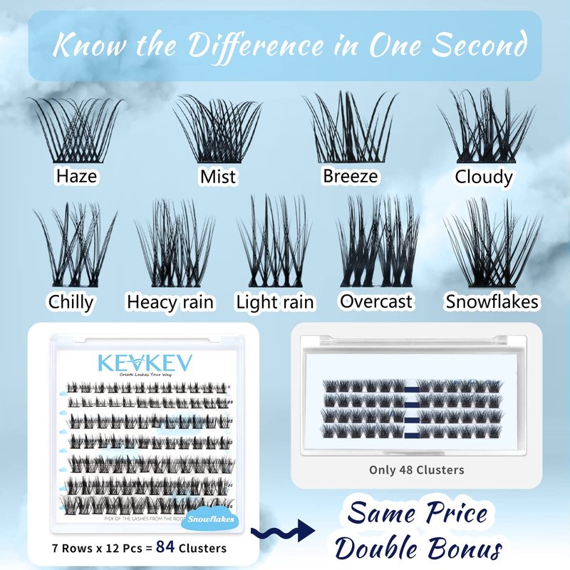 - Different lash styles & length to suit your mood: KevKev offers multiple lengths and curls for different lash look. 84 lash clusters, 8mm - 20mm in length. Try to find your own lash style at KevKev.