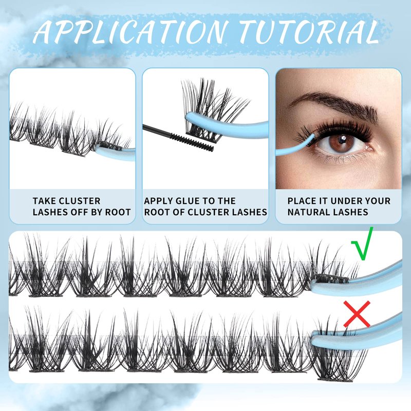 - Soft & Lightweight: Super thin band lash clusters to ensure the lashes will not hurt your eyes. Also we have upgraded our eyelash materials. Our cluster lashes are soft and fluffy just like natural lashes. No worry about the plastic look.