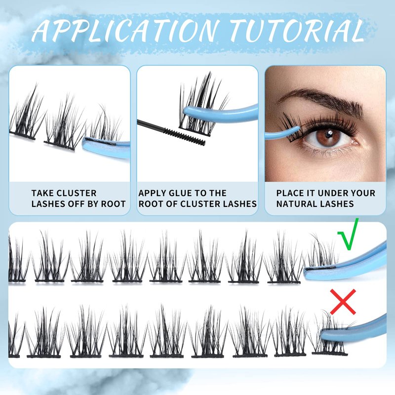 - Soft & Lightweight: Super thin band lash clusters to ensure the lashes will not hurt your eyes. Also we have upgraded our eyelash materials. Our cluster lashes are soft and fluffy just like natural lashes. No worry about the plastic look.