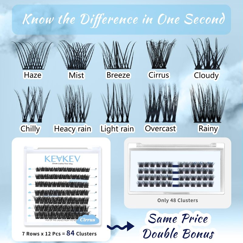 - Different lash styles & length to suit your mood: KevKev offers multiple lengths and curls for different lash look. 84 lash clusters, 8mm - 37mm in length. Try to find your own lash style at KevKev.