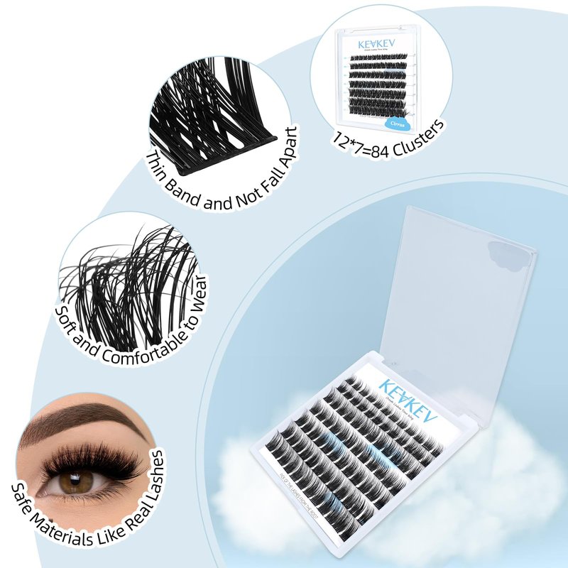 - Different lash styles & length to suit your mood: KevKev offers multiple lengths and curls for different lash look. 84 lash clusters, 8mm - 33mm in length. Try to find your own lash style at KevKev.