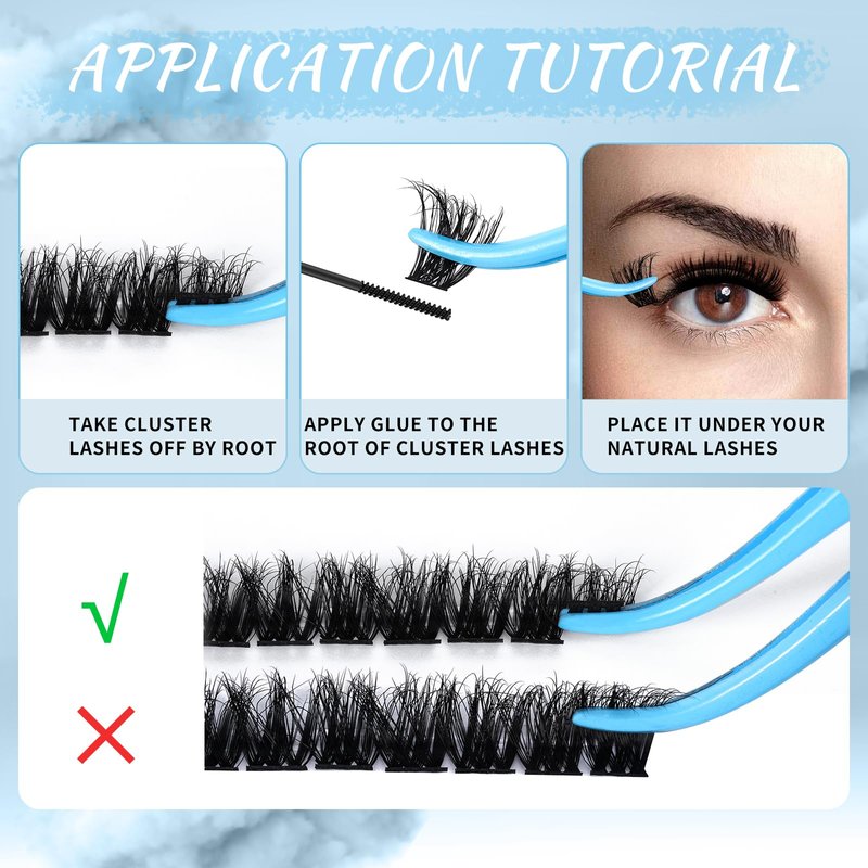 - Soft & Lightweight: Super thin band lash clusters to ensure the lashes will not hurt your eyes. Also we have upgraded our eyelash materials. Our cluster lashes are soft and fluffy just like natural lashes. No worry about the plastic look.