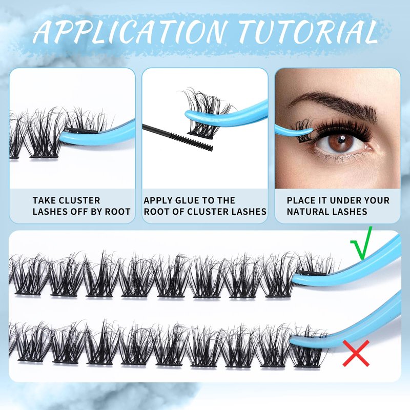 - Soft & Lightweight: Super thin band lash clusters to ensure the lashes will not hurt your eyes. Also we have upgraded our eyelash materials. Our cluster lashes are soft and fluffy just like natural lashes. No worry about the plastic look.