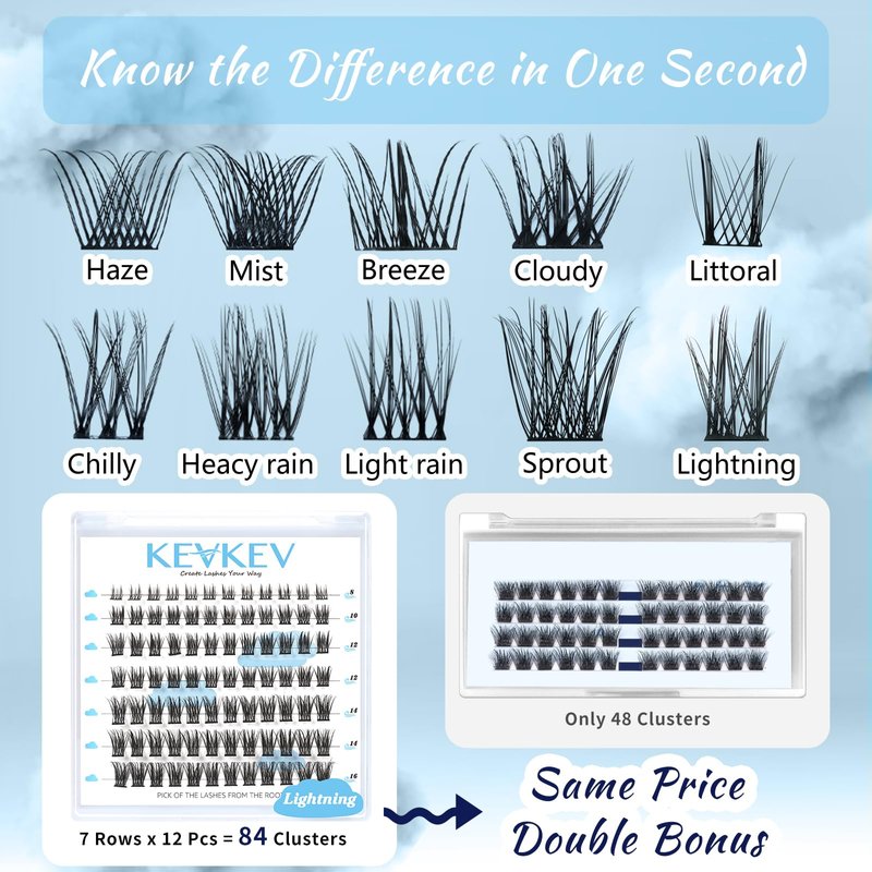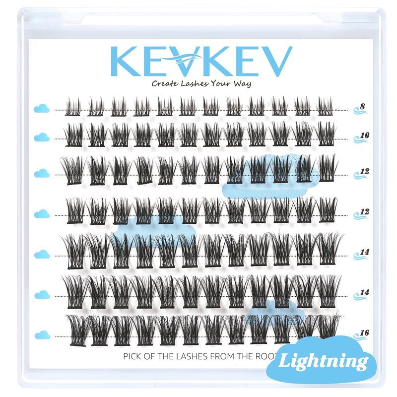 - Different lash styles & length to suit your mood: KevKev offers multiple lengths and curls for different lash look. 84 lash clusters, 8mm - 16mm in length. Try to find your own lash style at KevKev.