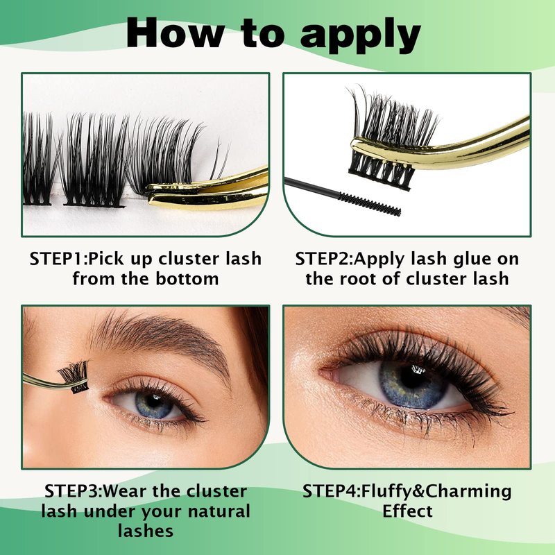 - 【Easy To Use But Do Not Fall Apart】The adhesive tape in the middle is upgraded, which is more convenient to pick up, and it is not easy to fall apart. Only 5-6 cluster lashes can easily get a gorgeous eyelash effect, saving more time and money.