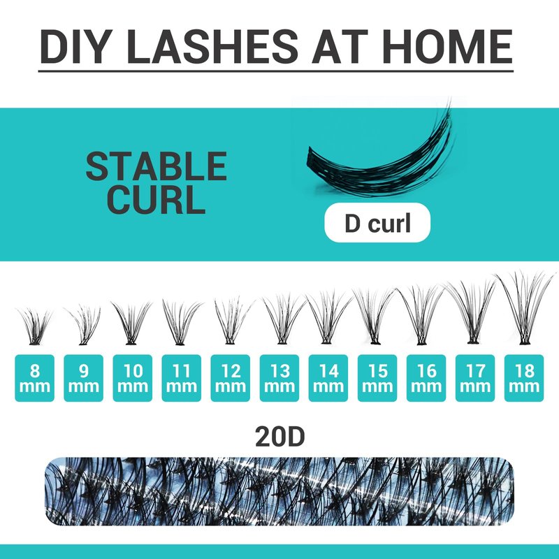 - Enjoy Your DIY Lash Extension at Home: If you are considering starting your cluster lashes journey or looking for something better than other products, please choose our DIY cluster eyelash extension. They meet all your length need diy lash cluster at home. 20D 8-18mm length lase cluster. So enjoy your diy lash extension at home.