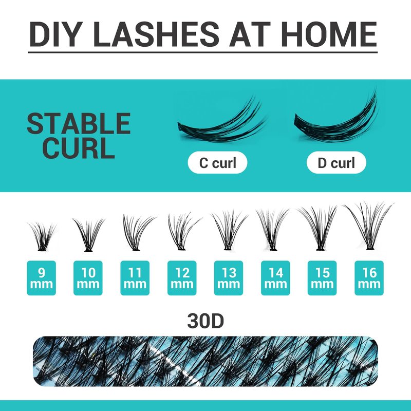 - High-Quality PBT Material: DIY lash cluster kit offers 320pcs high quality C/D curl eyelash clusters 30D 9-16mm length. And, eyelash clusters are made with high-quality PBT Material, look real, lightweight, comfy and durability.