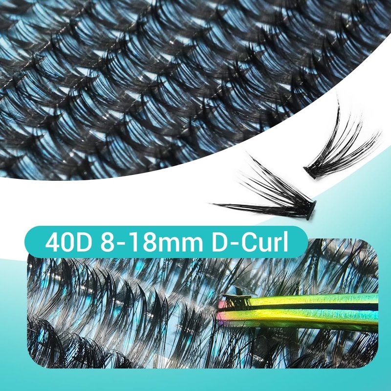 - High-Quality PBT Material: DIY lash cluster kit offers 320pcs high quality D curl eyelash clusters 40D 8-18mm length. And, eyelash clusters are made with high-quality PBT Material, look real, lightweight, comfy and durability.