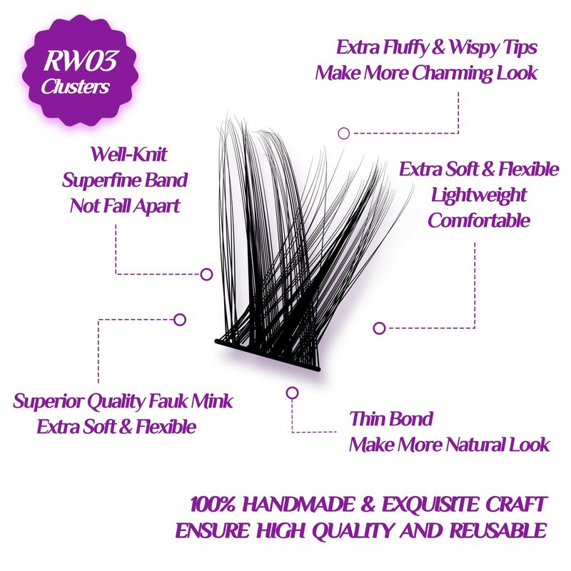 - INDIVIDUAL EYELASH CLUSTERS EASIER TO USE: : Applying our individual lashes clusters is a breeze, even for beginners!!! The flexible band effortlessly conforms to your lash line, ensuring a seamless blend with your natural lashes. With precise sizing and shape, RISUTE allows you for a quick and hassle-free application.