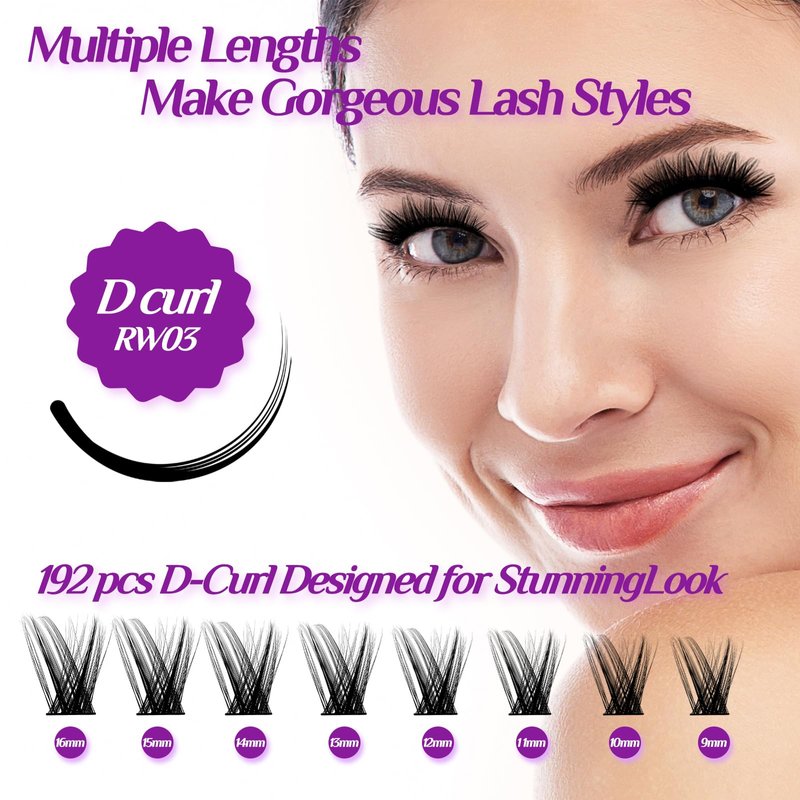 Lash Clusters DIY Eyelash Extension: Mega Volume C D Curl Individual Lashes 192PCS - Eyelash Clusters Extensions Wispy Natural Look False Lashes Cluster Fake DIY at Home 9-16mm RW03 by Risute