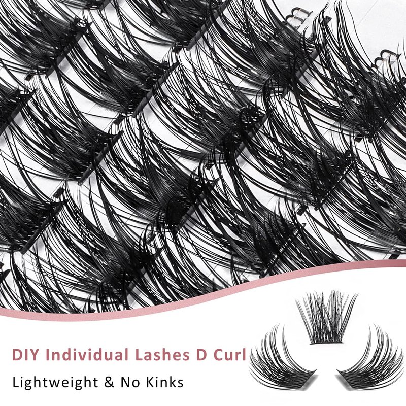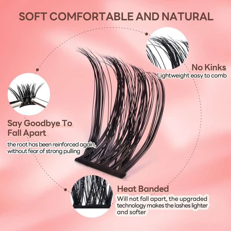 - 【Soft & Light】: Our cluster lashes are soft and fluffy, just like natural lashes, in addition, we have upgraded our eyelash material, with ultra-thin clusters of ribbon lashes to ensure that the lashes won't hurt your eyes. Don't worry about the plastic look.