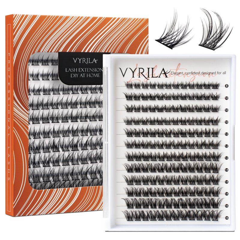 PREMIUM QUALITY MATERIALS: VYRILA lash clusters are crafted from premium lightweight fibers that are unique in both appearance and feel. They are fluffy, and ultra-soft, blending seamlessly with your natural lashes. Our lash clusters are gentle on your lashes and won’t leave behind any sticky residue, ensuring an easy, smooth professional-quality experience, just like a salon visit EASY TO USE & BEGINNER-FRIENDLY: No need for tedious matching—achieve flawless individual lashes in just 3 steps. Super easy and fast even for beginners and lash enthusiasts alike. Made from premium materials, our lashes clusters are sweat and water resistant. When used with the proper adhesive, lashes adhere instantly and last up to 24 hours, giving you natural and gorgeous lashes in no time SUPERIOR WORTH FOR MONEY: VYRILA cluster lashes stand up to daily wear and long-lasting. Each package contains 240 easy-to-use, permanently curled individual lashes that can be worn for up to 5 days per cluster at a time. No need to spend hundreds of dollars on lash extensions. You can DIY lash clusters at home anytime! Enjoy the endless possibilities of lashes 0.3mm KNOT-FREE INVISIBAND: VYRILA lash clusters improve your look without being heavy on the eyes! The lashes are no-tangle and easy to comb. 0.3mm ultra-thin lash band, flat and natural. Featuring VYRILA’s Knot-Free invisiband that provides an undetectable lash band that disappears and smoothly blends with your natural eyelashes for the most comfortable wear MULTIPLE LENTHS, MULTIPLE STYLES: VYRILA' 4 style must-have lash clusters complement everyday scenarios and a variety of makeup vibes. The lash styles "30D," "40D," "CHIC,"and "VOLUME" are ready to take you from a day at the office to dinner parties and dates, making your eyes look natural but ultra beautiful. Mixed 8-16mm lengths provide full opportunity for creativity and multiple applications. Create the best personalized lash look with VYRILA eyelash clusters