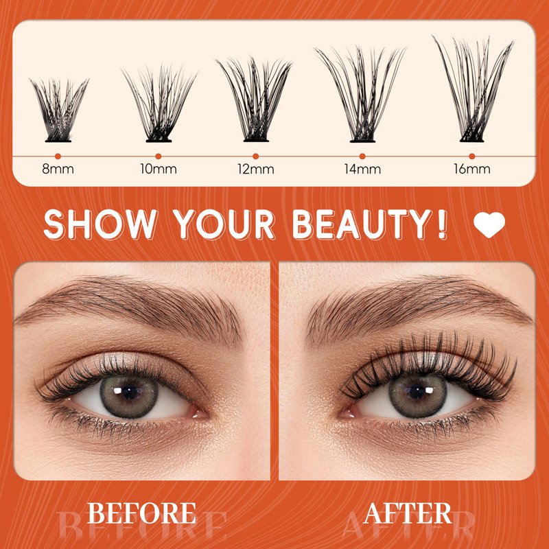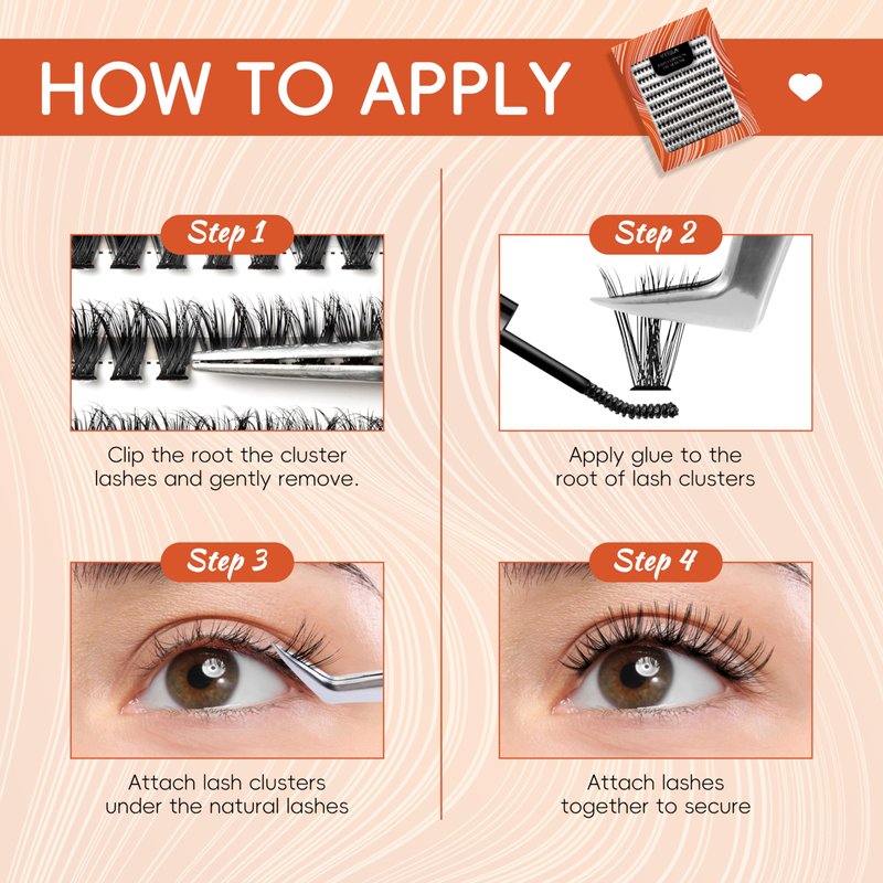 - EASY TO USE & BEGINNER-FRIENDLY: No need for tedious matching—achieve flawless individual lashes in just 3 steps. Super easy and fast even for beginners and lash enthusiasts alike. Made from premium materials, our lashes clusters are sweat and water resistant. When used with the proper adhesive, lashes adhere instantly and last up to 24 hours, giving you natural and gorgeous lashes in no time