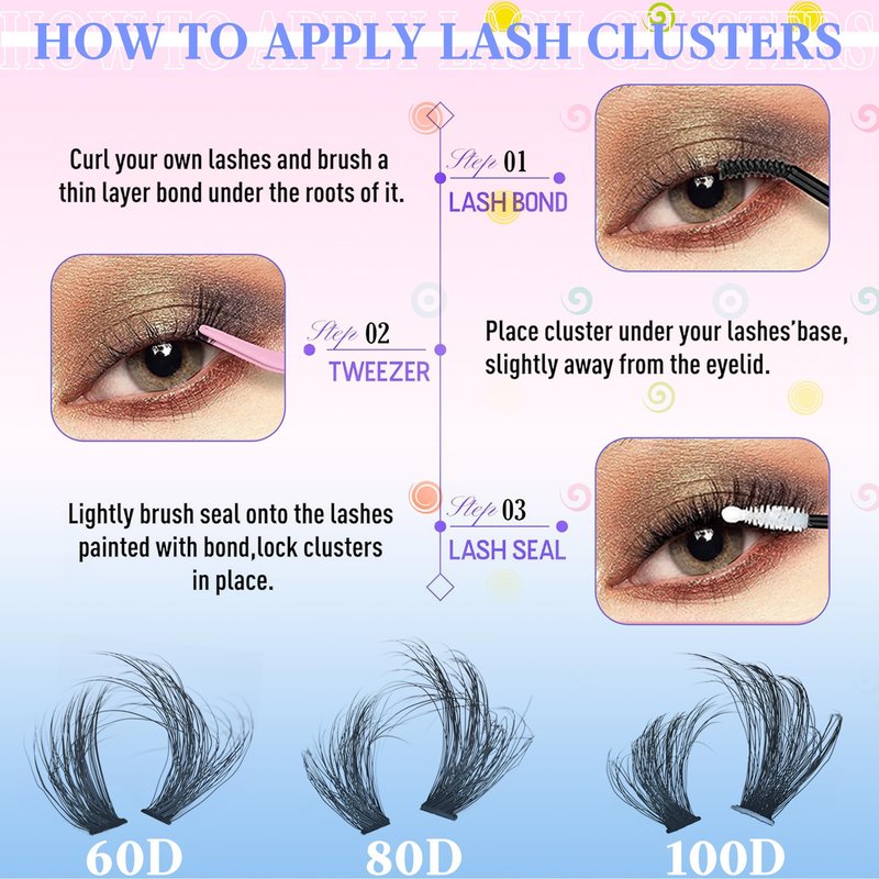 - 【Comfortable D Curl Lash Clusters】Soft PBT material and featuring thin bands is lighter and softer than regular individual eyelashes fibers.D curl lash clusters can maintain a long-lasting curl