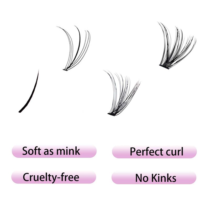 - Individual cluster lashes are handmade with high quality PBT fibers that ensure the lashes are soft, lightweight and comfortable to wear. Cluster lashes look more natural and fluffy.