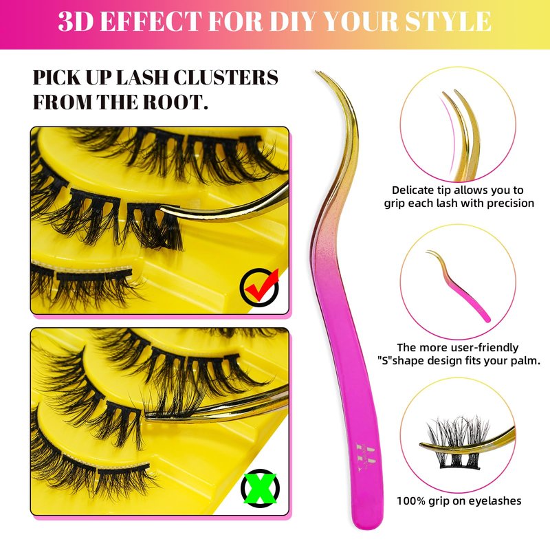 - 【Specification】You will get 10 Pairs eyelash clusters 5 styles ,eyelashes bond and seal 10ML*1 pc,lash applicator*1 pc,lashes remover for lash extensions*1pc per box.W diy clusters lash tweezers close well with good resilience,they give a good grip to the lash clusters.With easy-to-follow instructions and all the tools you need,our lash extension kit makes DIY lash application a breeze.