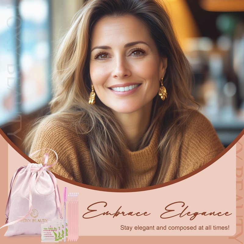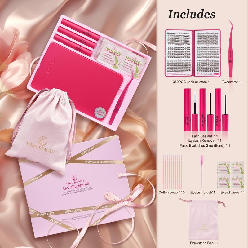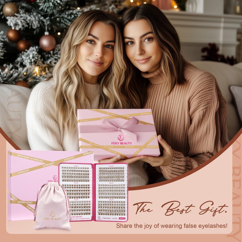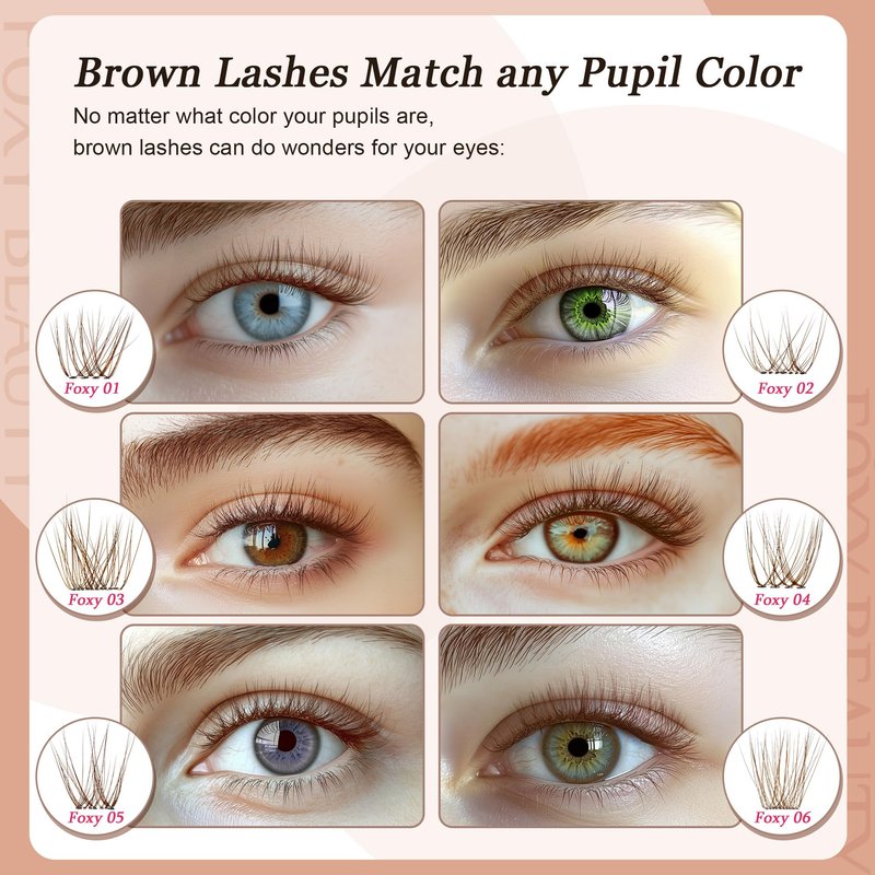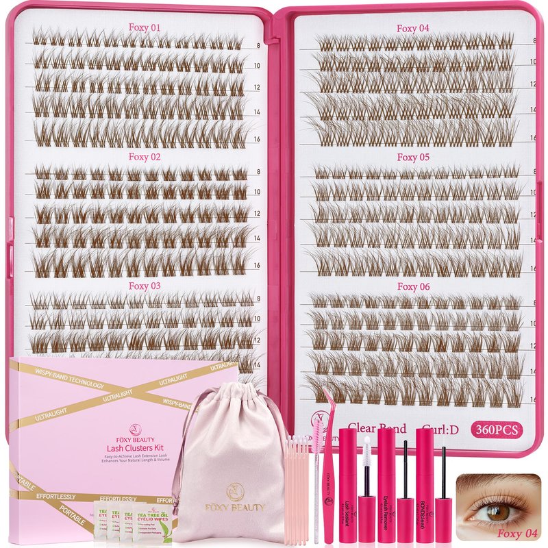 Lash Clusters Kit with Bond and Seal Brown Lash Clusters For Mature Eyes Lash Extension Kit with Eyelid Wipes Brush Eyelash Extension Kit with Drawstring Bag Eyelash Clusters Gift Set For Women