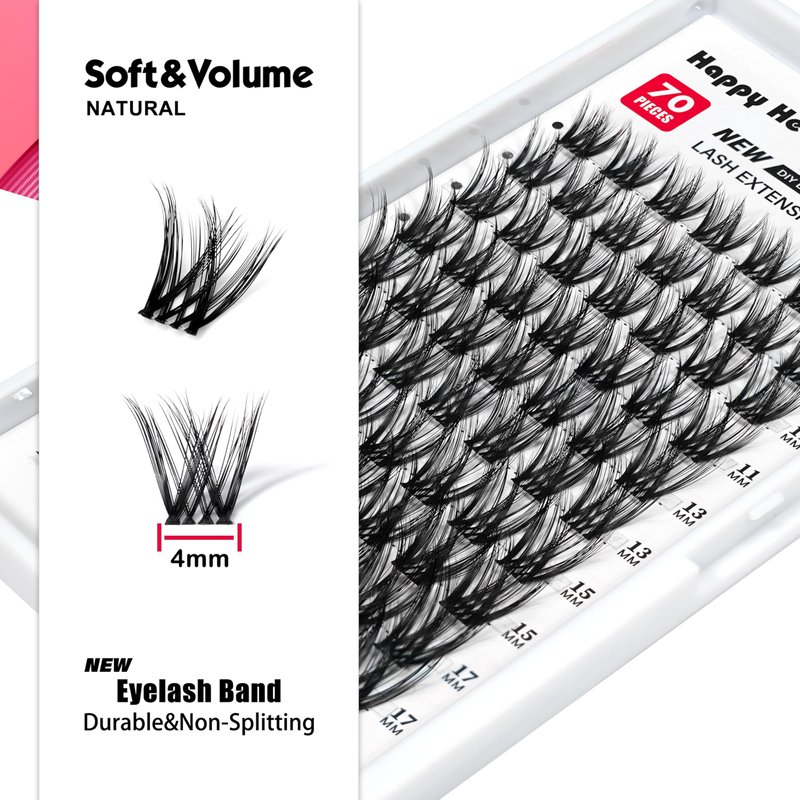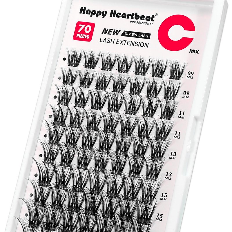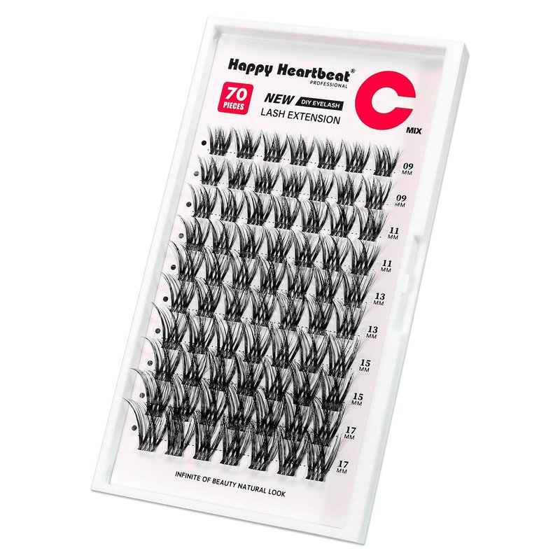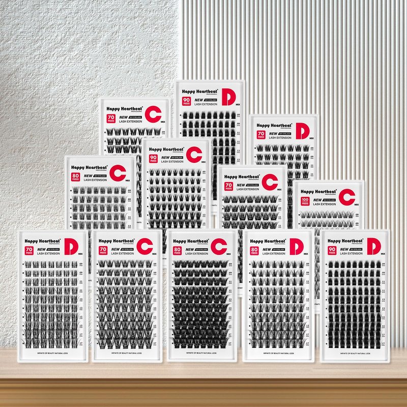 Happy Heartbeat Individual Eyelash Extension Flexible Band Lash Clusters C D Curl Volume Reusable DIY False Eyelashes