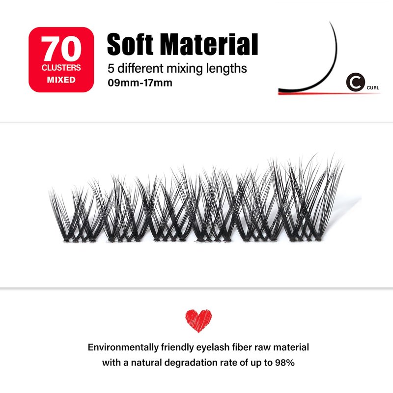 - Eyelash Material:Happy Heartbeat brand has innovatively developed eco-friendly raw materials for false eyelash fibers, with a natural degradation rate of 98%,Having soft characteristics like real eyelashes, while also allowing false eyelashes to maintain a longer lasting curvature
