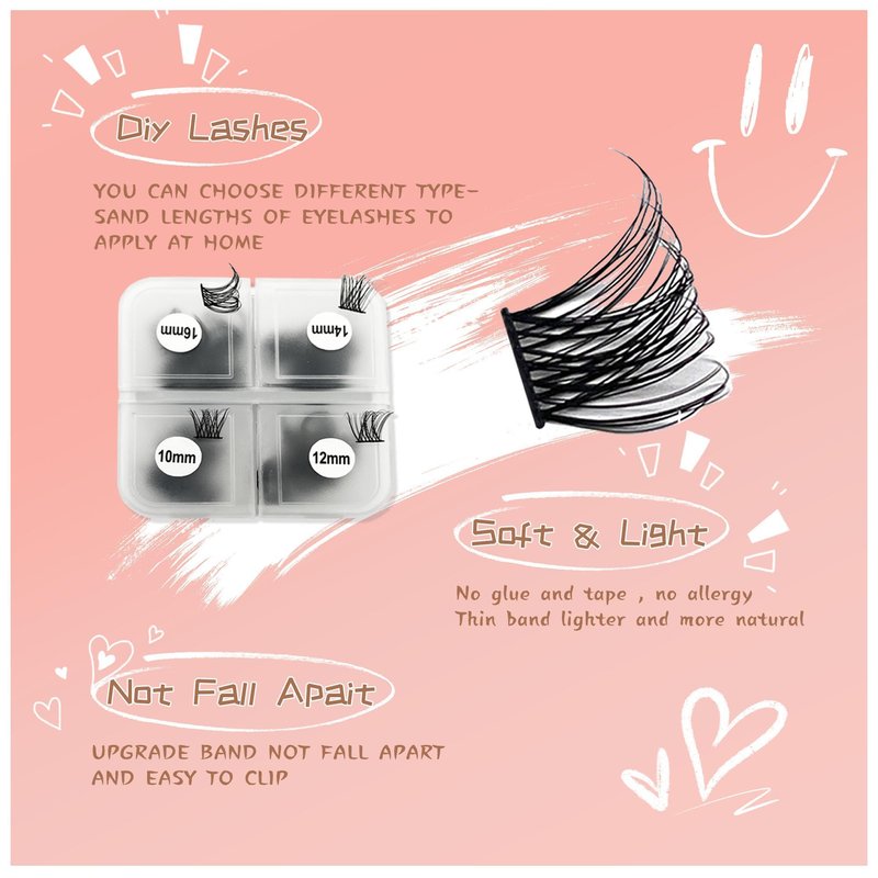 - 💞10mm/12mm/14mm/16mm, 24 Pcs per length, Total 96 Pcs, Thin Tape, Soft Hair, Lightness: More convenient, more eco-friendly box appearance brings more lash clusters, handmade from high-quality fibers, soft cotton fine lash extensions are designed to fit your lashes perfectly . After wearing, it is like thin feather eyelashes, which is comfortable to wear