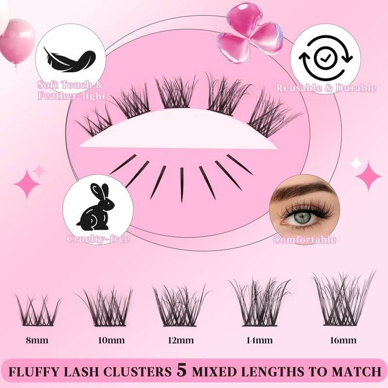 - Style: Wispy Plus Lash Cluster with Bottom-(6&8-16MM)