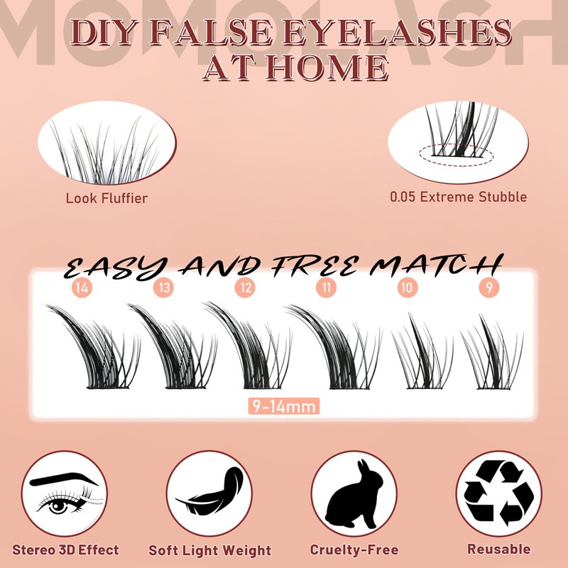 - PERFECT MAKEUP: The top lashes and bottom lashes have been matched for you to create the perfect look.C Curly and fluffy cluster lashes, Fluffy and curly, perfect for night or party makeup.