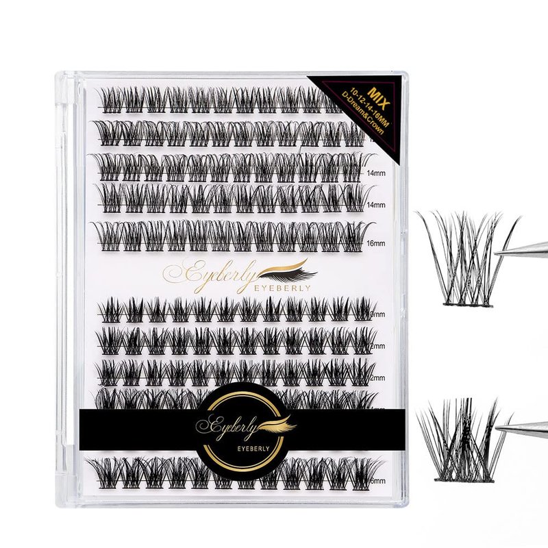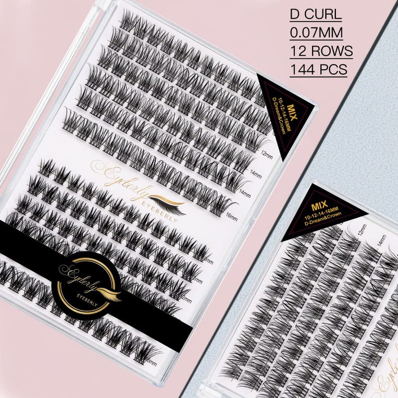 Lash Clusters,144pcs D Curl Individual Lashes Mix Style Lash Extension, Eyeberly Cluster Lashes Natural Look Eyelash Extensions 10/12/14/16mm Mix Length 2 In 1 DIY Wispy Lashes at Home (Dream&Crown)