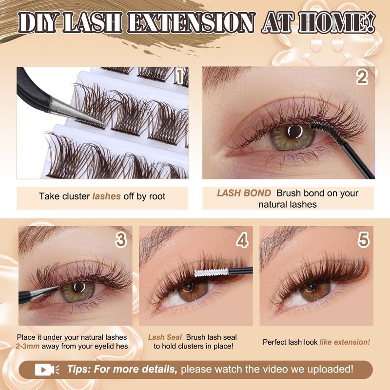 *Kit Include: 120pcs cluster lashes, 10ml brown lash bond and seal