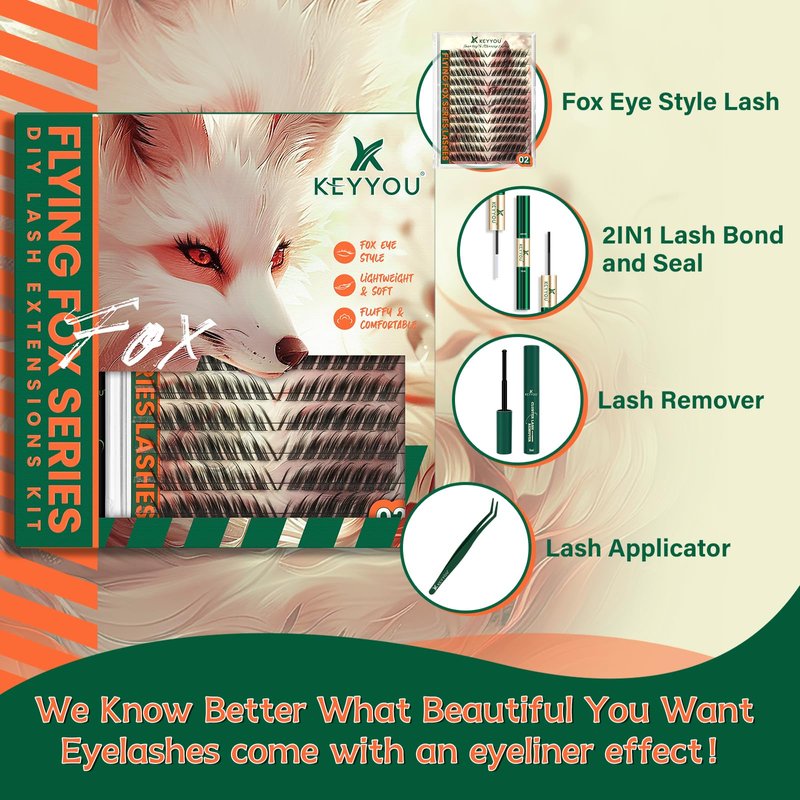 - 【DIY Lash Extension Kit】KEYYOU DIY fox lash clusters kit, featuring inspired by the world of foxes. Eyelash extension kit comes with 144PCS fox lash clusters, lash bond and seal, lash remover and lash tweezers.Give you a unique eyelash clusters experience.