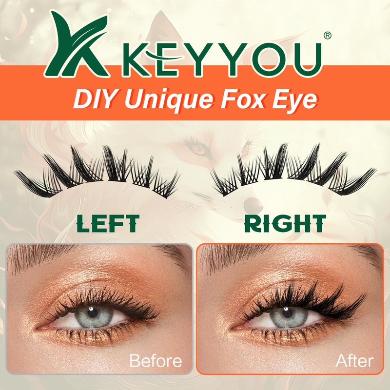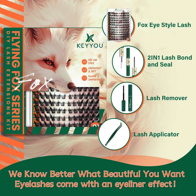 - 【DIY Lash Extension Kit】KEYYOU DIY fox lash clusters kit, featuring inspired by the world of foxes. Eyelash extension kit comes with 144PCS fox lash clusters, lash bond and seal, lash remover and lash tweezers.Give you a unique eyelash clusters experience.