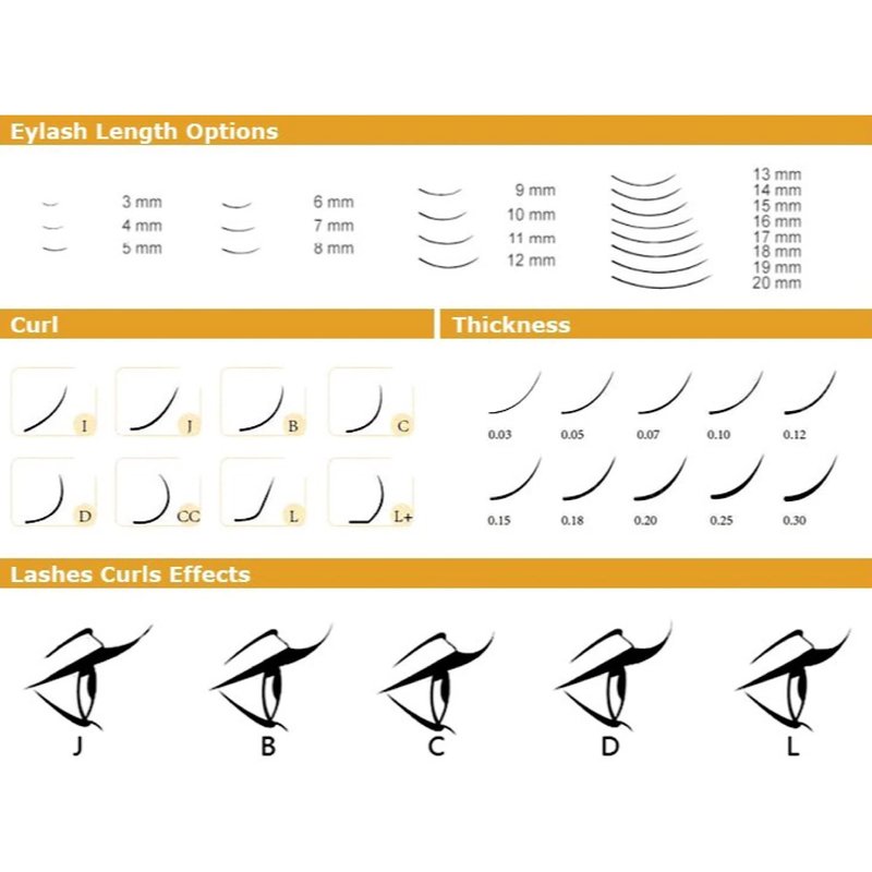 - Color: Matte Black. Thickness: 0.07mm, Curl: D, Length: 9mm-17mm Mix Tray.