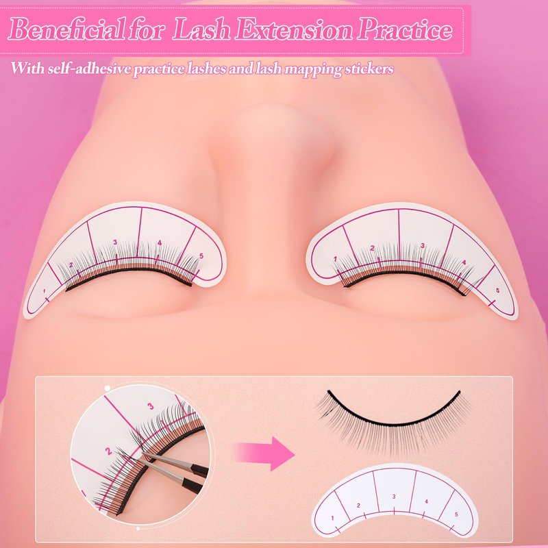 - [Package Include] The Lash Mannequin Head Practice kit includes flat lash mannequin doll face head, tweezers, practice lashes, five-point practice isolation papers. This basic lash kits is very realistic and great for people trying to learn how to do lashes.
