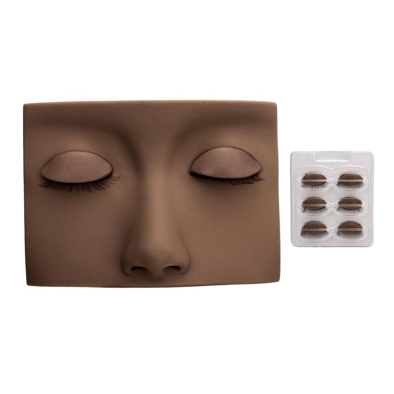 Lash Mannequin Head, Silicone Lash Extension Supplies with 3 Pairs Replaced Eyelid, Removable Realistic Eyelids with Eyelash Mannequin for Lash Practice, Makeup Eyelash Extensions (Dark Brown)