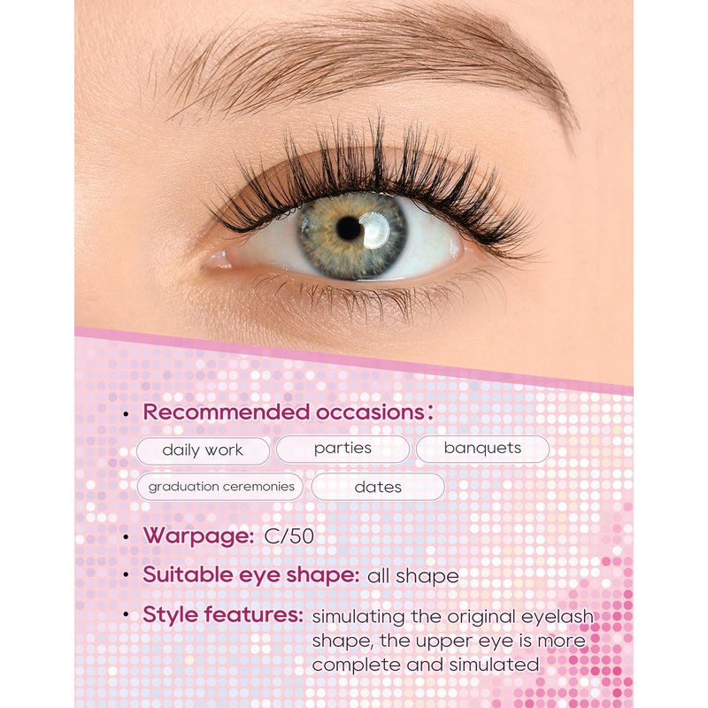- W-shaped fine pile eyelashes: fluffy, soft and layered, more three-dimensional